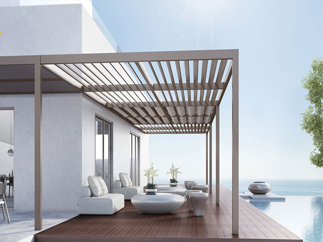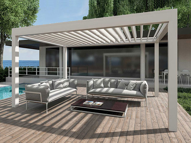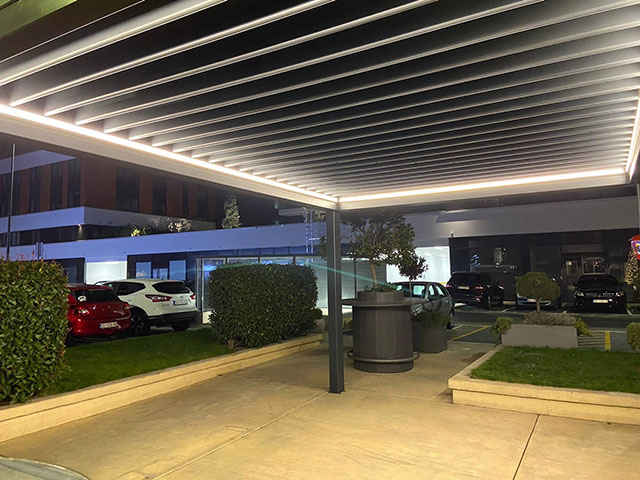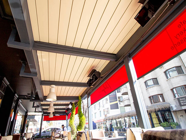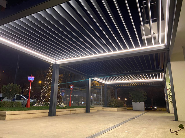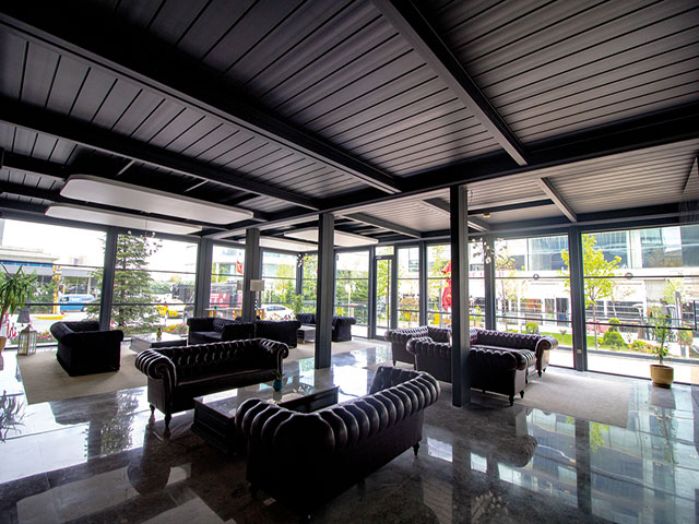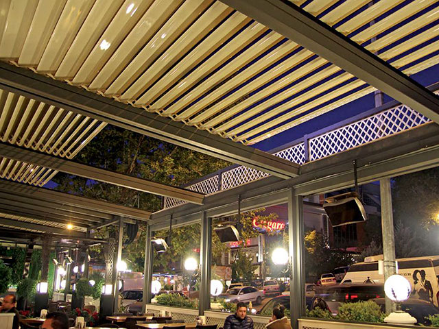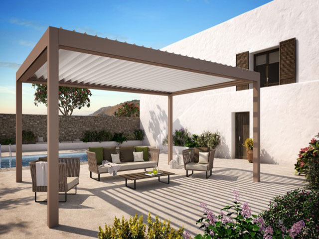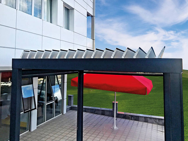 Pergola sistemlerine yeni bir enerji katan Bioklimatik pergola ile otel, café & restaurant, villa, alış-veriş merkezleri gibi mekanların vazgeçilmez mimari ürünü olması için geliştirildi.