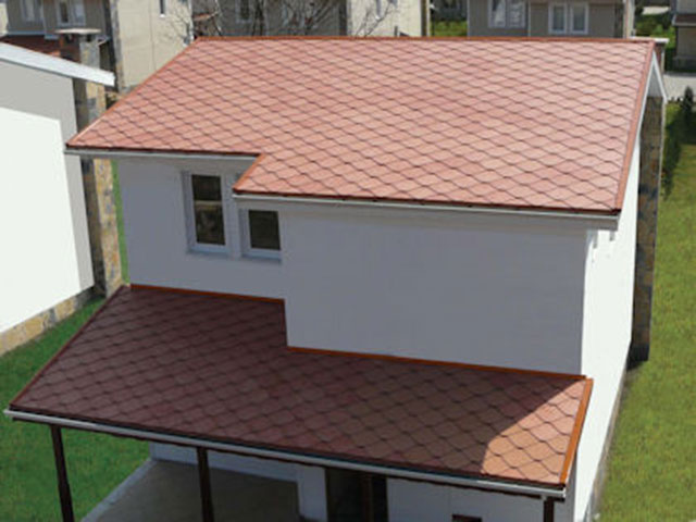 Altında osb (ahşap plaka) üzerine mebran (ziftli kağıt) ve onun üzerinede Shingle (şıngıl) (kumlu ziftli malzeme) uygulaması yapılır.