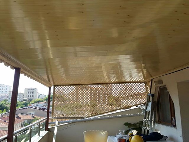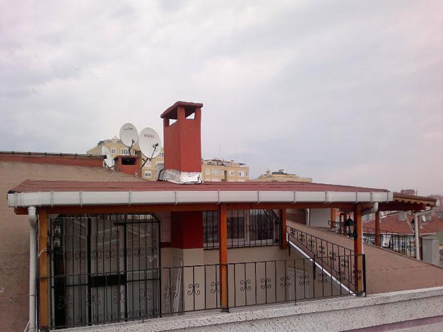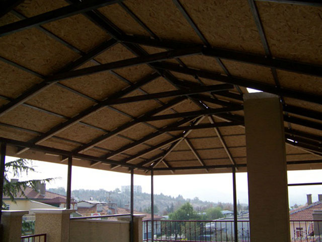 Altında osb (ahşap plaka) üzerine mebran(ziftli kağıt) ve onun üzerinede kiremit uygulaması yapılır.