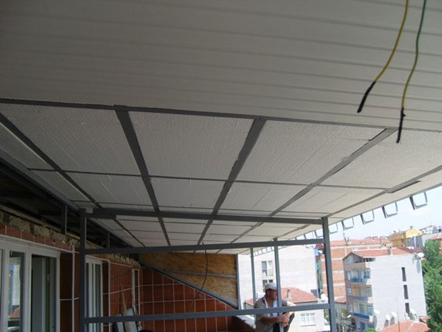 Hazırlanan demir panelin üzerine arası köpük dolgulu ısı yalıtımlı saç kaplama olan sandviç paneller kurularak uygulanır.