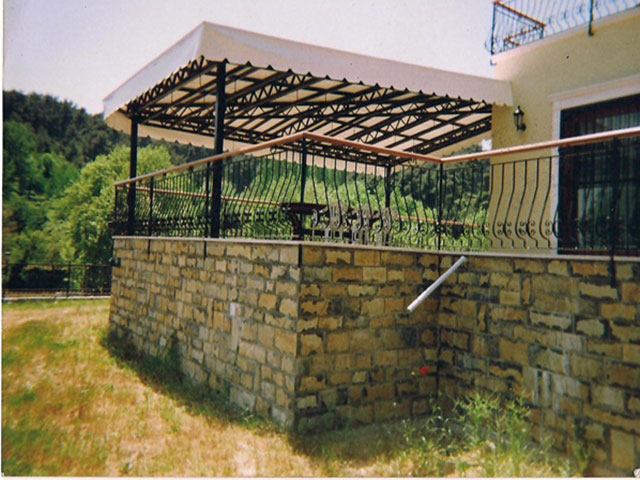Demir Pergule Ayakları isteğinize bağlı alüminyum veya demir üst kısmı ise iskelesi demirden oluşur plastik le kaplanır ve en üstene isteğe bağlı Kiremit sandviç panel veye şıngıl hangisi tercih ederseniz ona bağlı işlemler uygulanarak kullanımınıza sunulmaktadır.